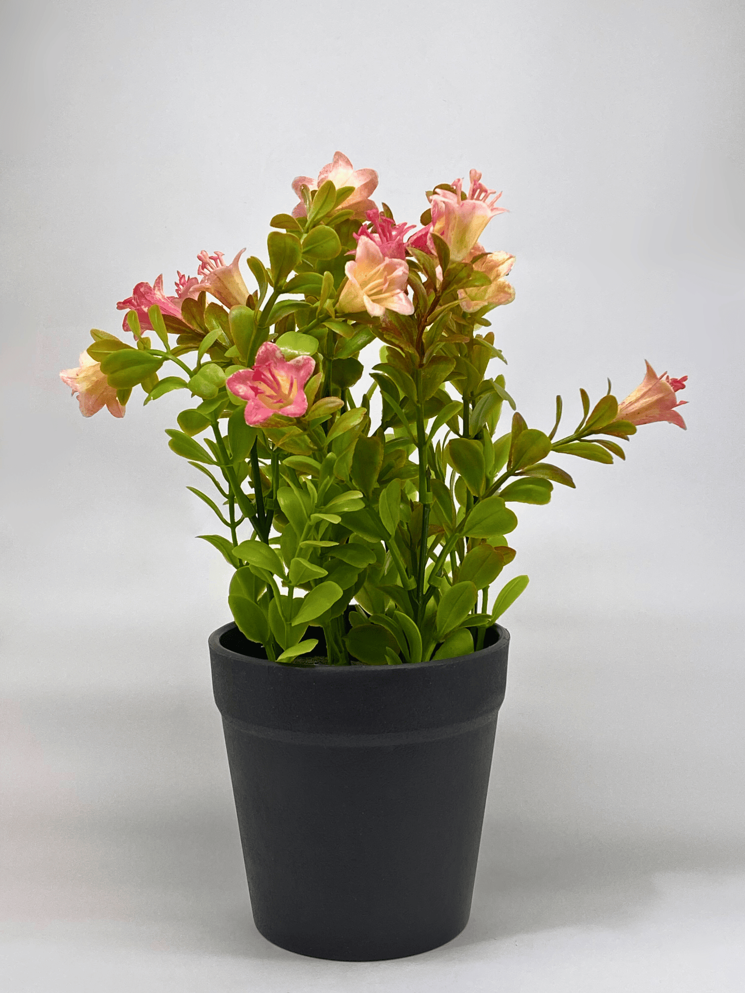 Add a pop of natural charm to your space with this artificial pink flower plant, beautifully arranged in a modern black pot. With its vibrant pink blooms and rich green leaves, it's perfect for enhancing your home, office, or event setup with a fresh and stylish look.