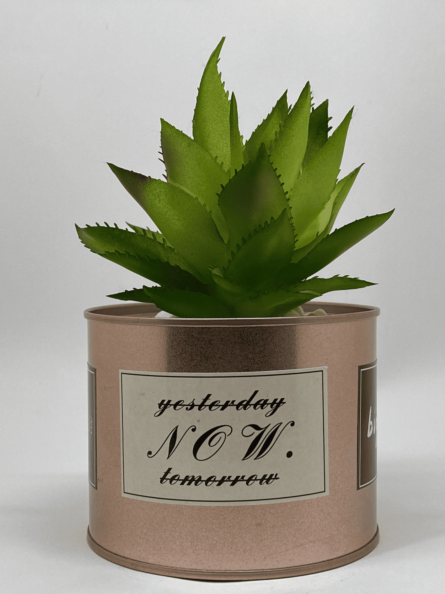 A charming faux succulent set in a rustic tin pot, perfect for adding a natural touch to any room. Ideal for desks, shelves, and small spaces. Stylish, compact, and effortlessly decorative.