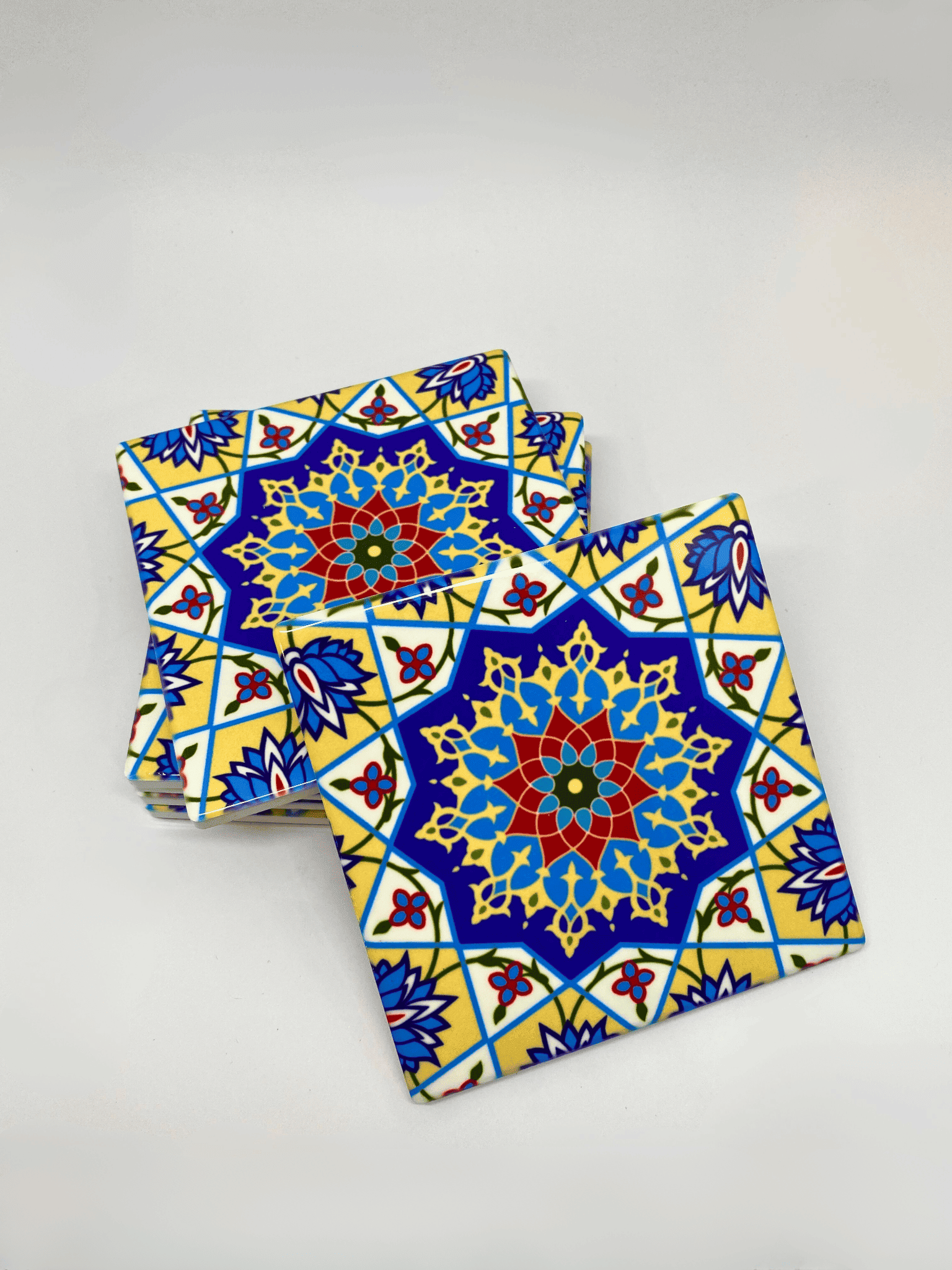 Add a touch of charm to your table and tops with this beautifully crafted coaster mat inspired by Moroccan patterns. Perfect for placing under cups, glasses, or small bowls to protect your surfaces from heat, stains, and moisture. These mats not only keep your table clean but also serve as eye-catching decorative elements for center tables, sideboards, or kitchen counters. Ideal for chai time, dawat serving, or everyday use.