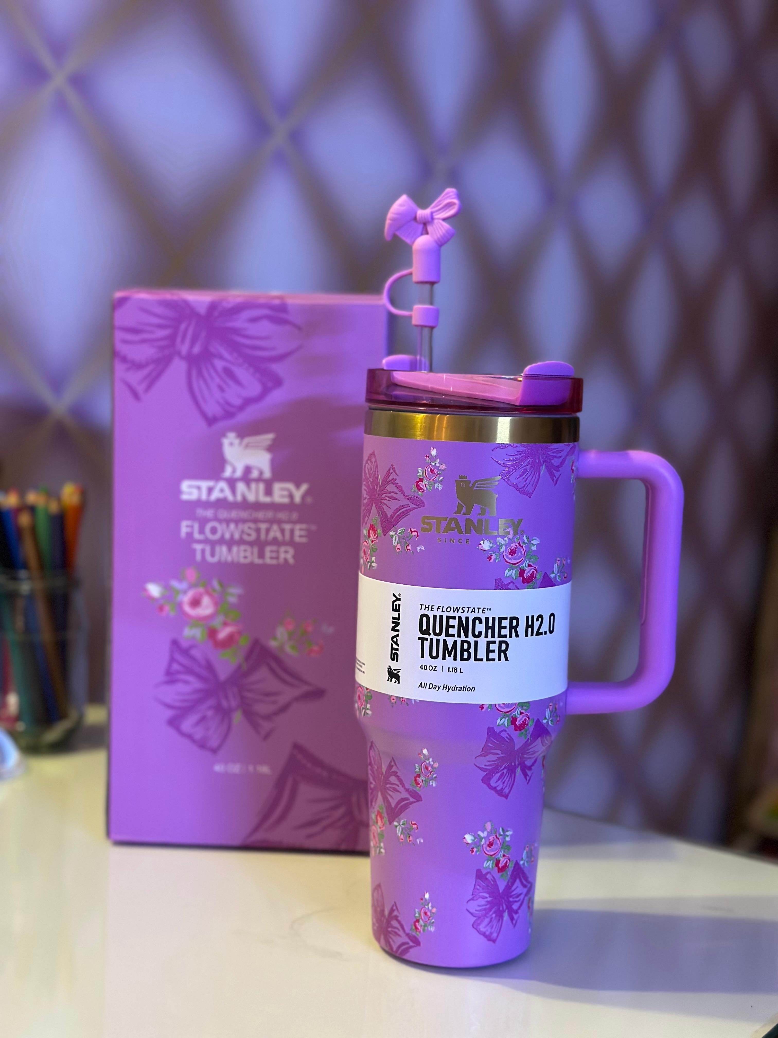 Enjoy premium hydration with the stylish Stanley Quencher H2.0 – 40oz. Designed with a golden rim touch and beautiful detailing, this tumbler is perfect for keeping your drinks hot or cold throughout the day. It features a sturdy handle, a good-quality reusable straw, and even comes with a cute protective straw cover for added hygiene.